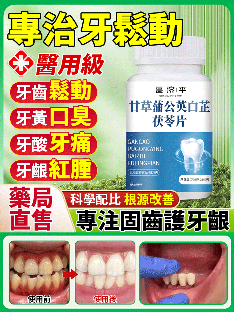 【專治牙鬆動】甘草蒲公英白芷茯苓片